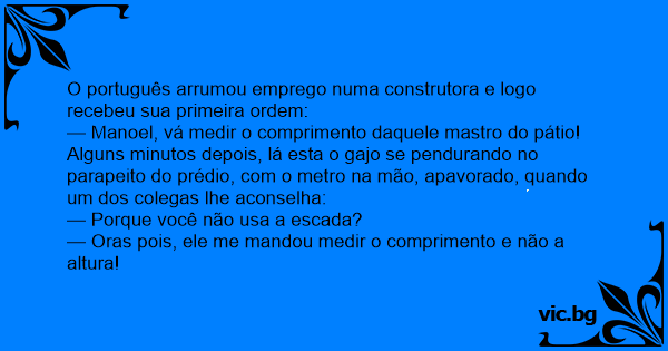 — Oras pois, ele me mandou medir o comprimento e não a altura!