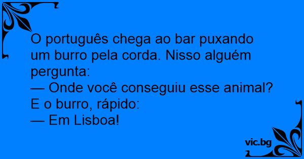 O português chega ao bar puxando um вurrо pela corda. Nisso alguém pergunta:
