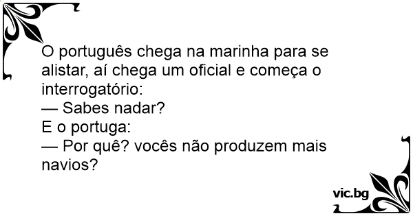 O português chega na marinha para se alistar, aí chega um oficial e começa o interrogatório: