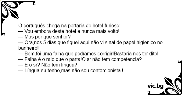 — Ora,nos 5 dias que fiquei aqui,não vi sinal de papel higienico no banheiro!