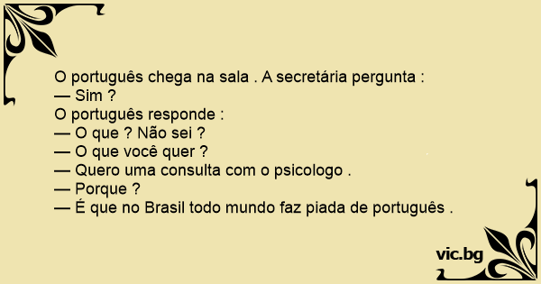 — É que no Brasil todo mundo faz piada de português .