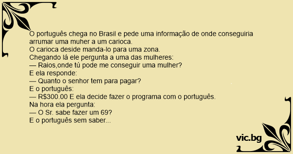 O português chega no Brasil e pede uma informação de onde conseguiria arrumar uma muher a um carioca.