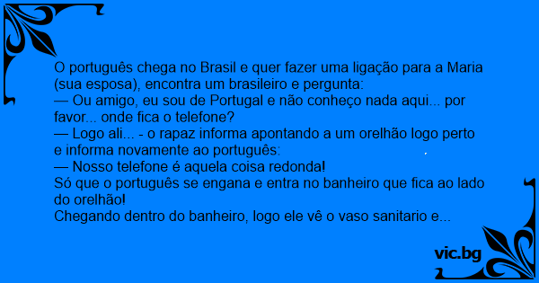 O português chega no Brasil e quer fazer uma ligação para a Maria (sua esposa), encontra um brasileiro e pergunta: