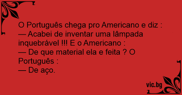 — Acabei de inventar uma lâmpada inquebrável !!! E o Americano :