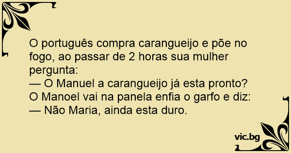 O português compra carangueijo e põe no fogo, ao passar de 2 horas sua mulher pergunta: