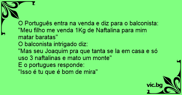 "Mas seu Joaquim pra que tanta se la em casa e só uso 3 naftalinas e mato um monte"