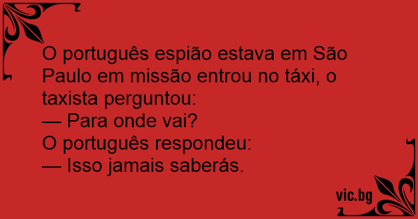 O português espião estava em São Paulo em missão entrou no táxi, o taxista perguntou: