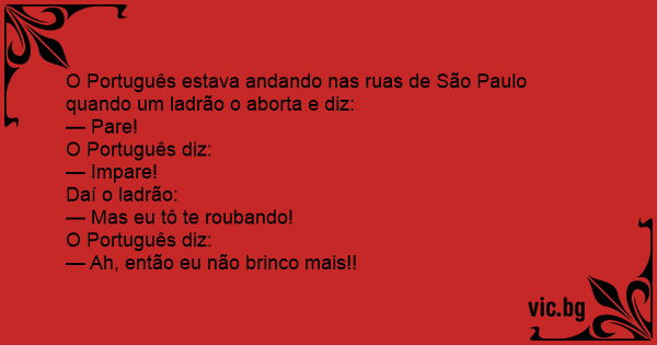 O Português estava andando nas ruas de São Paulo quando um ladrão o aborta e diz: