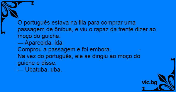 O português estava na fila para comprar uma passagem de ônibus, e viu o rapaz da frente dizer ao moço do guiche: