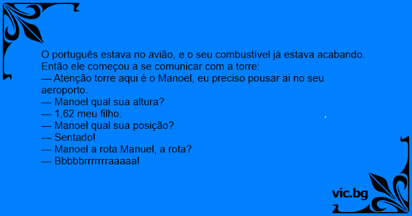— Atenção torre aqui é o Manoel, eu preciso pousar ai no seu aeroporto.