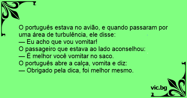 O português estava no avião, e quando passaram por uma área de turbulência, ele disse: