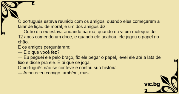 O português estava reunido com os amigos, quando eles começaram a falar de lição de moral, e um dos amigos diz: