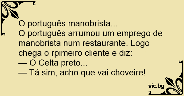 O português arrumou um emprego de manobrista num restaurante. Logo chega o rpimeiro cliente e diz: