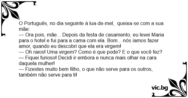 O Português, no dia seguinte à lua-de-mel, queixa-se com a sua mãe:
