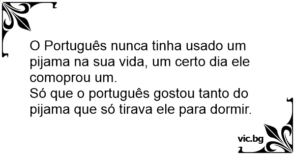 O Português nunca tinha usado um pijama na sua vida, um certo dia ele comoprou um.