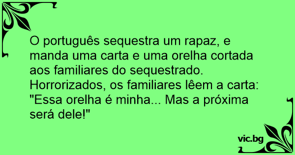 O português sequestra um rapaz, e manda uma carta e uma orelha cortada aos familiares do sequestrado.