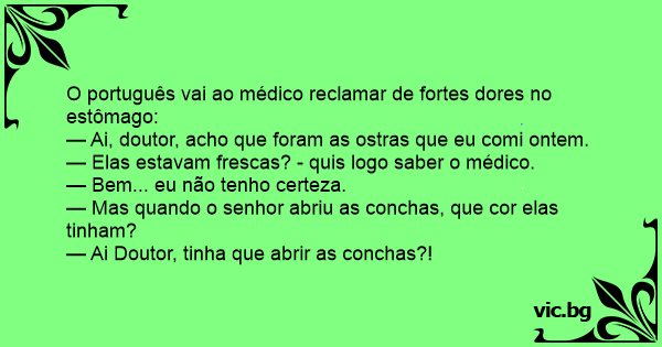 — Ai, doutor, acho que foram as ostras que eu comi ontem.