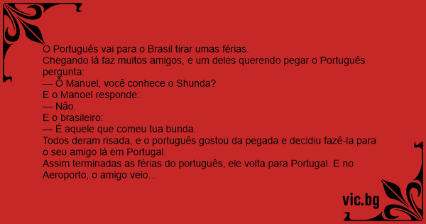 Chegando lá faz muitos amigos, e um deles querendo pegar o Português pergunta: