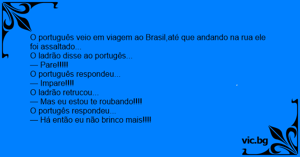 O português veio em viagem ao Brasil,até que andando na rua ele foi assaltado...