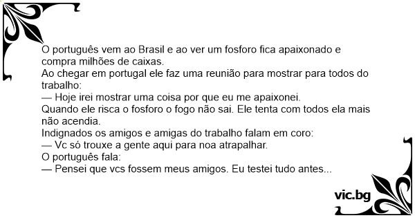 O português vem ao Brasil e ao ver um fosforo fiса apaixonado e compra milhões de caixas.