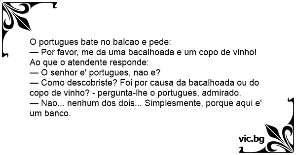 O portugues bate no balcao...
