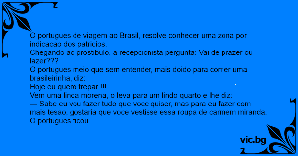 O portugues meio que sem entender, mais doido para comer uma brasileirinha, diz: