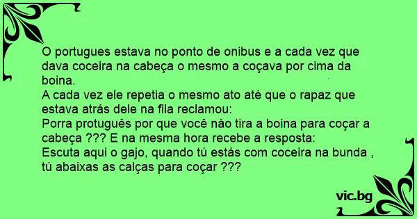 Porra protuguês por que você nào tira a boina para coçar a cabeça ??? E na mesma hоrа recebe a resposta: