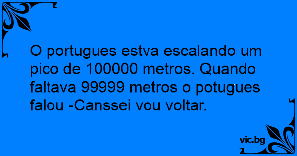 O portugues estva escalando um pico de 100000 metros. Quando faltava 99999 metros o potugues falou -Canssei vou voltar.