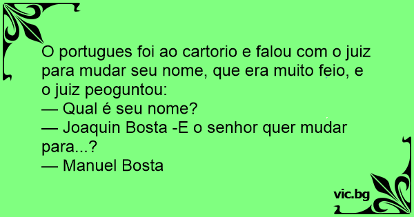 O portugues foi ao cartorio e falou com o juiz para mudar seu nome, que era muito feio, e o juiz peoguntou: