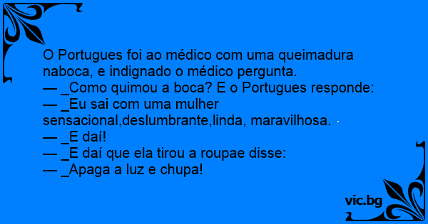 O Portugues foi ao médico com uma queimadura naboca, e indignado o médico pergunta.