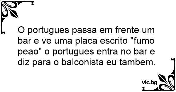 O portugues passa em frente um bar e ve uma placa escrito "fumo peao" o portugues entra no bar e diz para o balconista eu tambem.