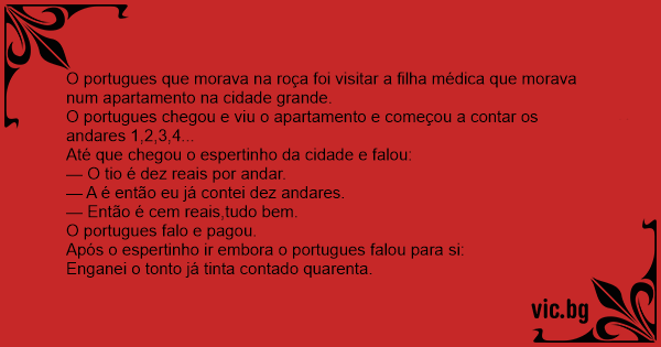 O portugues chegou e viu o apartamento e começou a contar os andares 1,2,3,4...