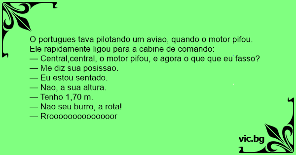 O portugues tava pilotando um aviao, quando o motor pifou.