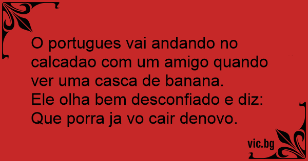 O portugues vai andando no calcadao com um amigo quando ver uma casca de banana.