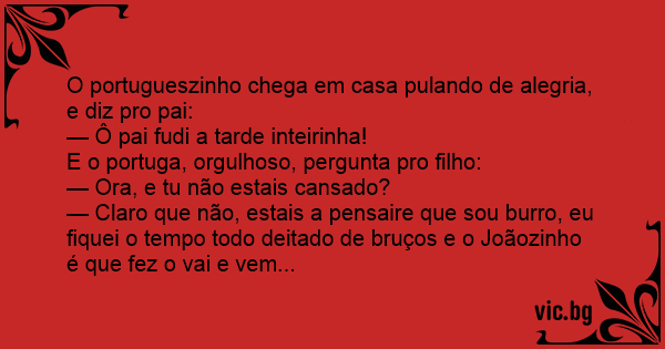 O portugueszinho chega em casa pulando de alegria, e diz pro pai: