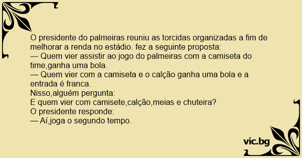 — Quem vier assistir ao jogo do palmeiras com a camiseta do time,ganha uma bola.