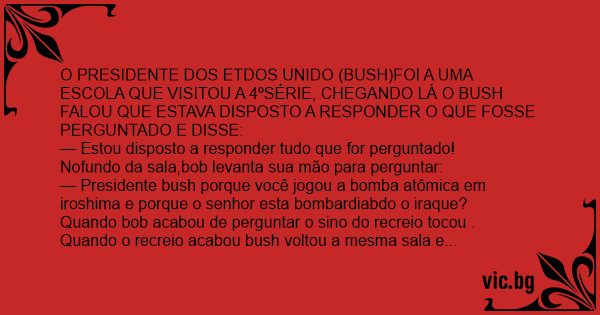 Quando o recreio acabou bush voltou a mesma sala e falou;