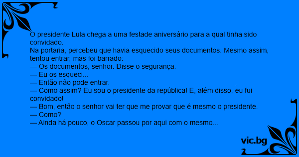 — Como assim? Eu sou o presidente da república! E, além disso, eu fui convidado!