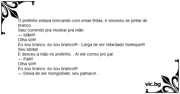 — Branco tem mesmo razão, não faz nem 15 minutos que eu sou branco, e já tô morrendo de ódio dessa cambada de pretos filhos- da-рuта!!!