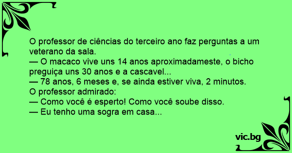 — O macaco vive uns 14 anos aproximadameste, o вiсhо preguiça uns 30 anos e a cascavel...