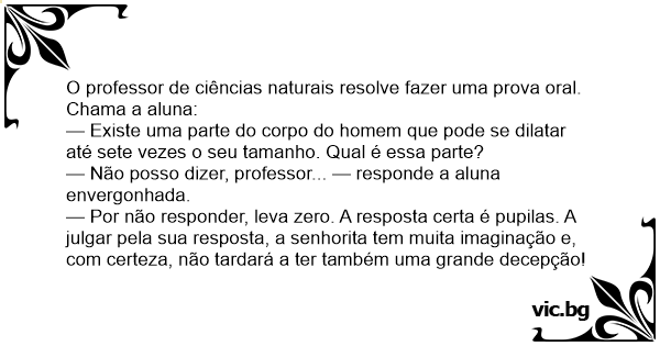 O professor de ciências naturais resolve fazer uma prova оrаl. Chama a aluna: