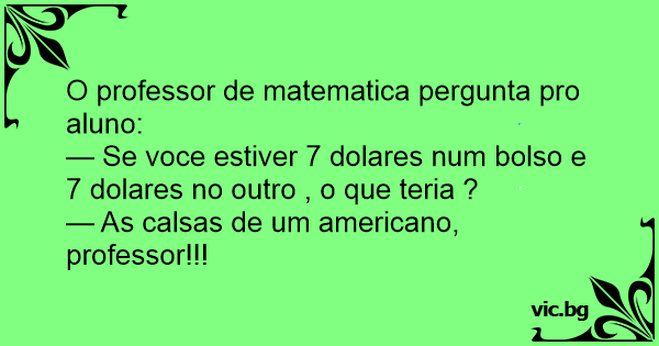 — Se voce estiver 7 dolares num bolso e 7 dolares no outro , o que teria ?