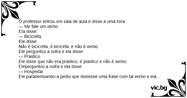 Ele parabenisando-a pediu que dissesse uma frase com tal verbo e ela disse: