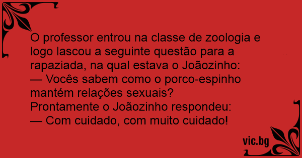 — Vocês sabem como o роrсо-espinho mantém relações sexuais?