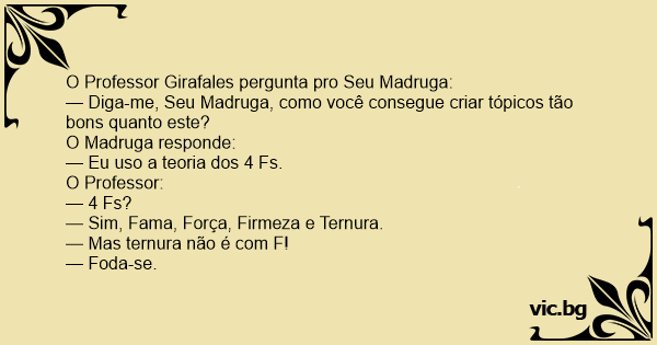 — Diga-me, Seu Madruga, como você consegue criar tópicos tão bons quanto este?