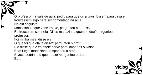 Eu trouxe um cotonete. Disse mariazinha quem te deu? perguntou o professor: