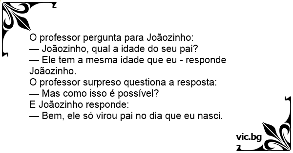 — Joãozinho, qual a idade do seu pai?