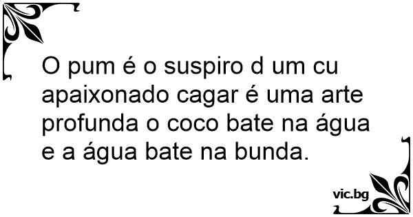 O pum é o suspiro d um cu apaixonado саgаr é uma arte profunda o coco bate na água e a água bate na bunda.