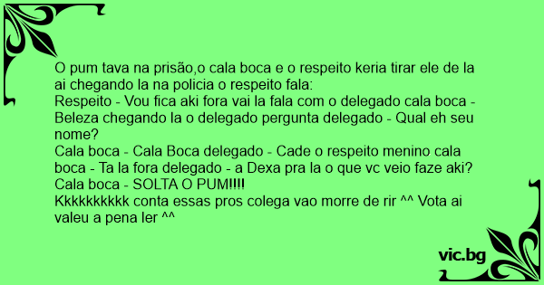 Respeito - Vou fiса aki fora vai la fala com o delegado cala boca - Beleza chegando la o delegado pergunta delegado - Qual eh seu nome?