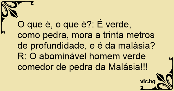 O que é, o que é?: É verde, como pedra, mora a trinta metros de profundidade, e é da malásia?